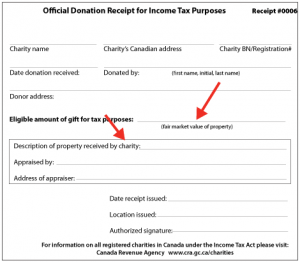 - If the fair market value is expected to be more than $1,000, CRA strongly recommends that the property be appraised by a professional who is not associated with either the donor or the charity. The name and address of the appraiser should be included on the official receipt.